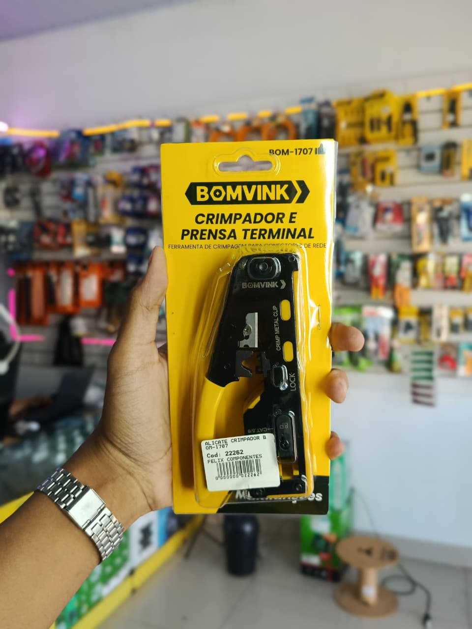 O Alicate Crimpador e Prensa Terminal para Cabo LAN CAT5 e CAT6 Bomvink é ideal para montagem e manutenção de redes de dados. Desenvolvido para crimpar terminais e conectores com precisão, garante conexões firmes e confiáveis. Fabricado com material resistente e formato ergonômico, é indicado para uso profissional ou doméstico em instalações de rede e telefonia.