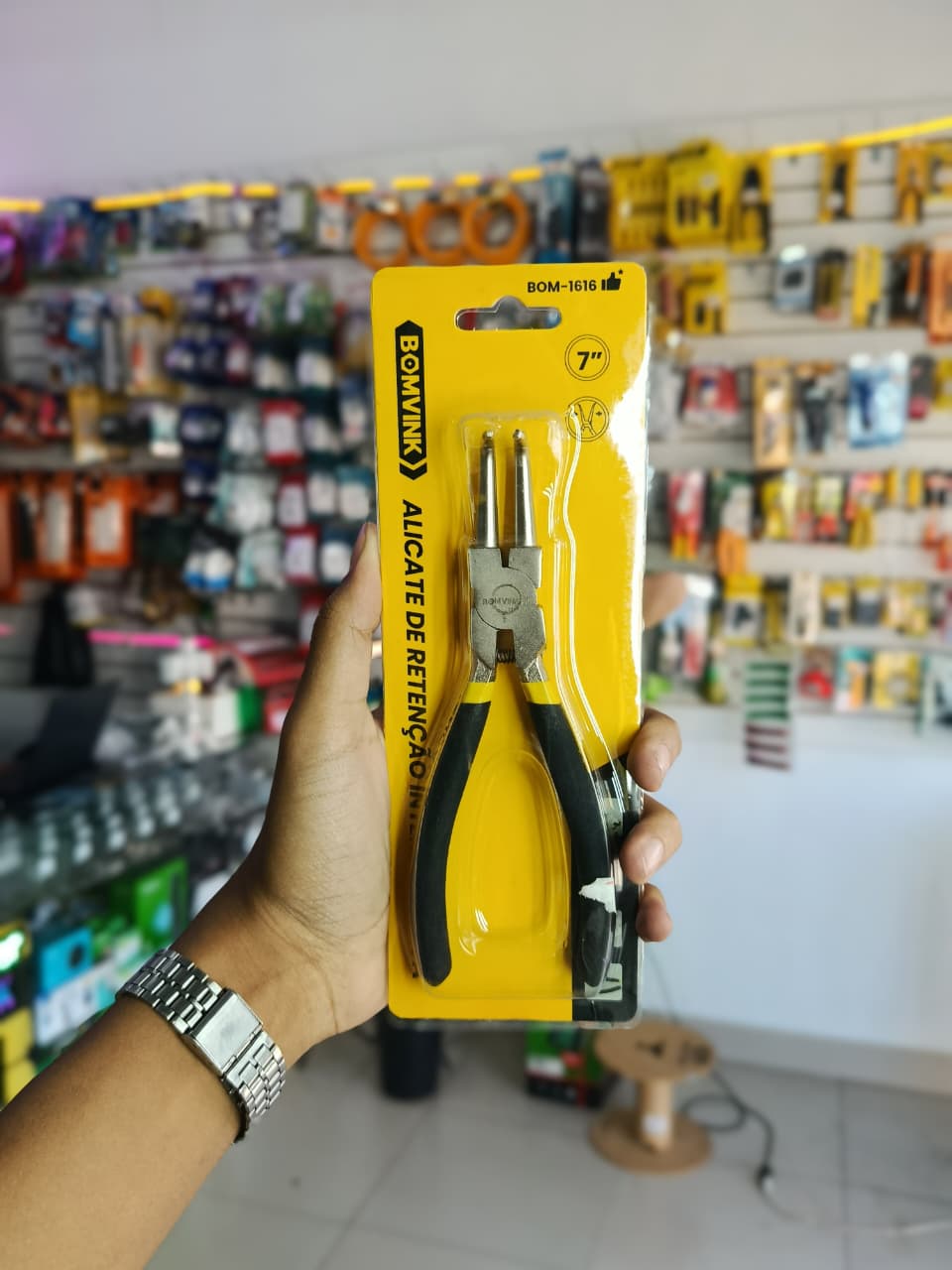 Alicate de retenção interna curvo Bomvink, ideal para anéis internos.