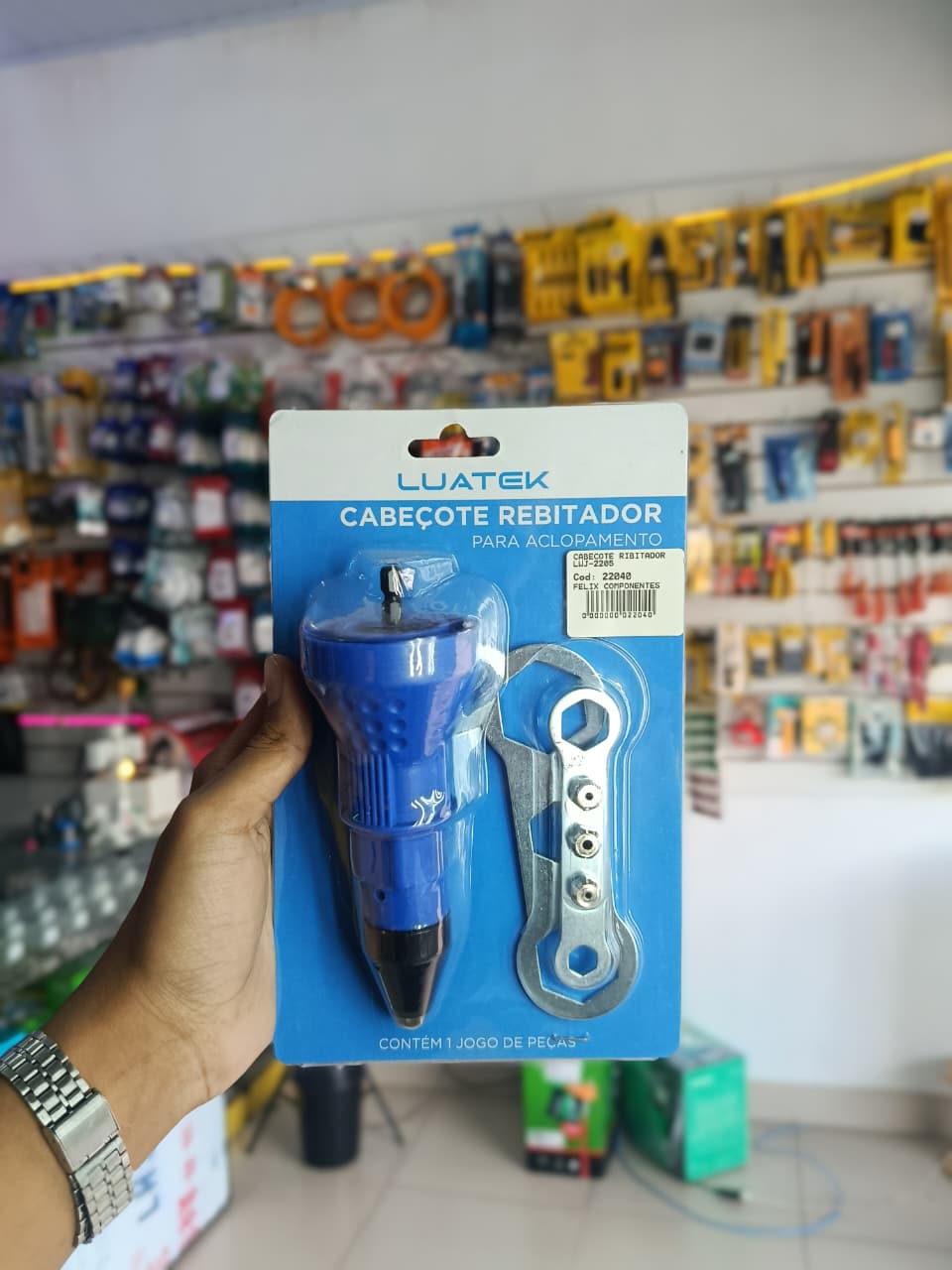 O Cabeçote Rebitador para Acoplamento Luatek é ideal para aplicação de rebites com mais praticidade e eficiência. Projetado para acoplamento em furadeiras, facilita o trabalho, reduzindo esforço manual. Fabricado com material resistente, oferece durabilidade e excelente desempenho, sendo indicado para uso profissional ou doméstico em montagens e reparos.
