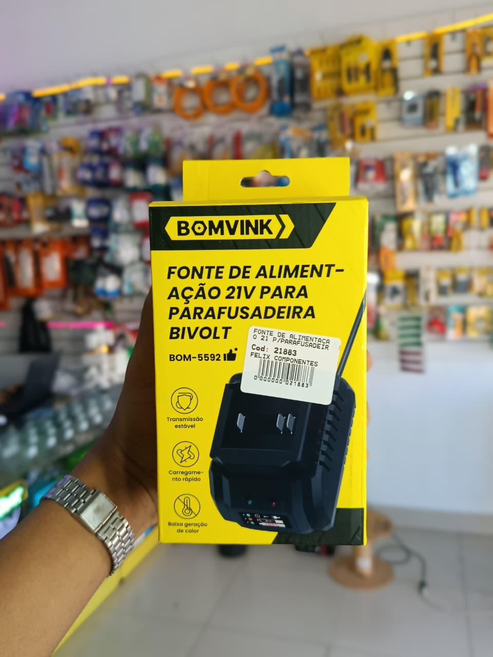 Fonte 21V Bomvink bivolt, ideal para alimentação de parafusadeiras.
