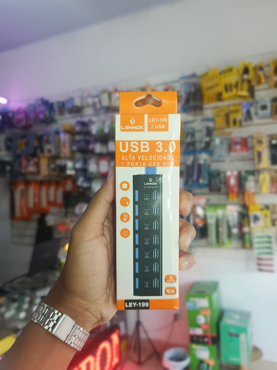 O Hub USB 3.0 7 Portas com Liga/Desliga Lehmox é ideal para expandir as conexões USB do seu computador ou notebook. Conta com 7 portas USB 3.0 de alta velocidade, proporcionando transferência de dados rápida e eficiente. Possui botões individuais com função liga/desliga, oferecendo mais controle e economia de energia. Perfeito para conectar pen drives, HDs externos, teclado, mouse e outros dispositivos USB.