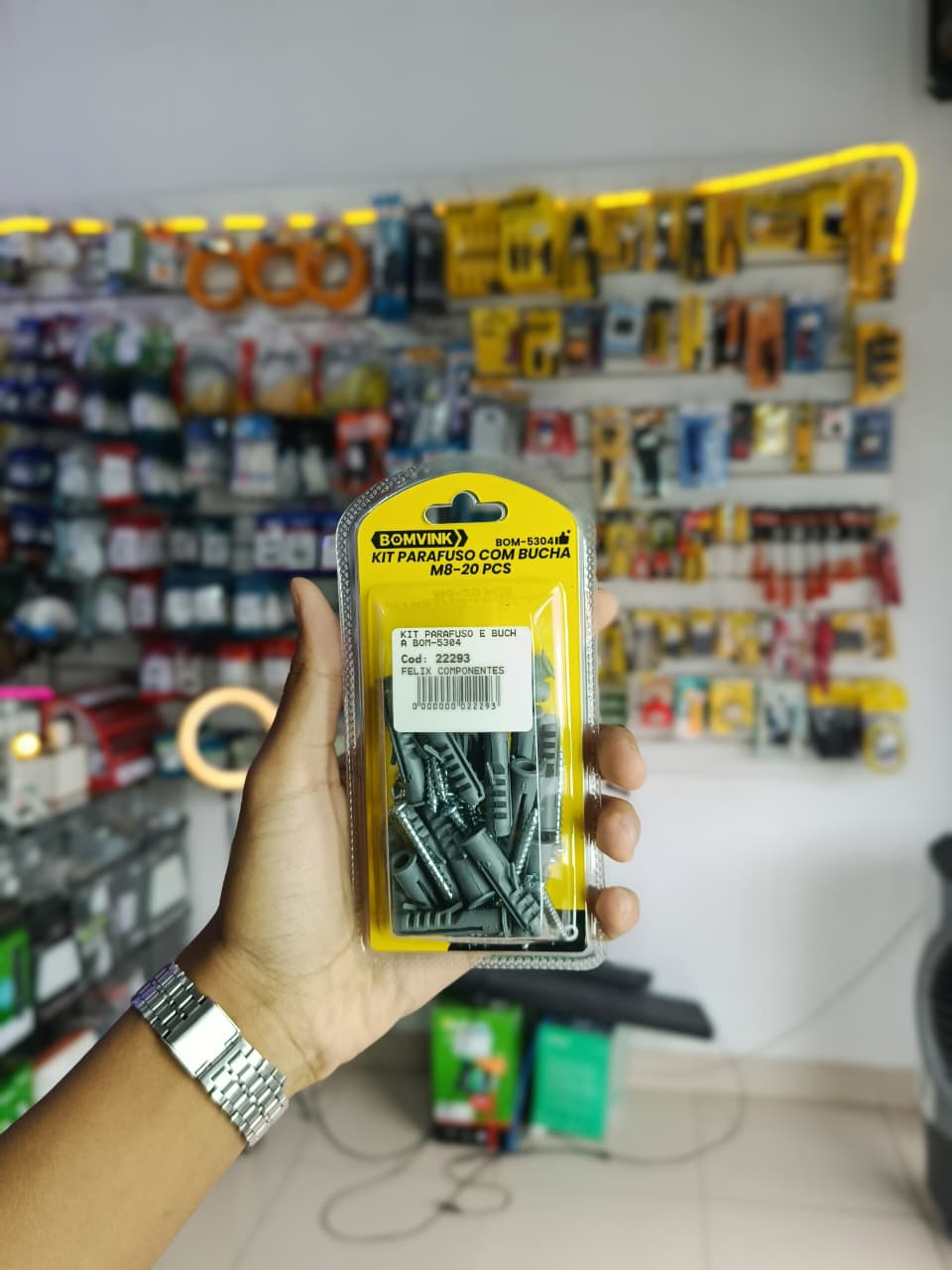 Kit parafuso com bucha M8 com 20 peças, ideal para fixações firmes e seguras.