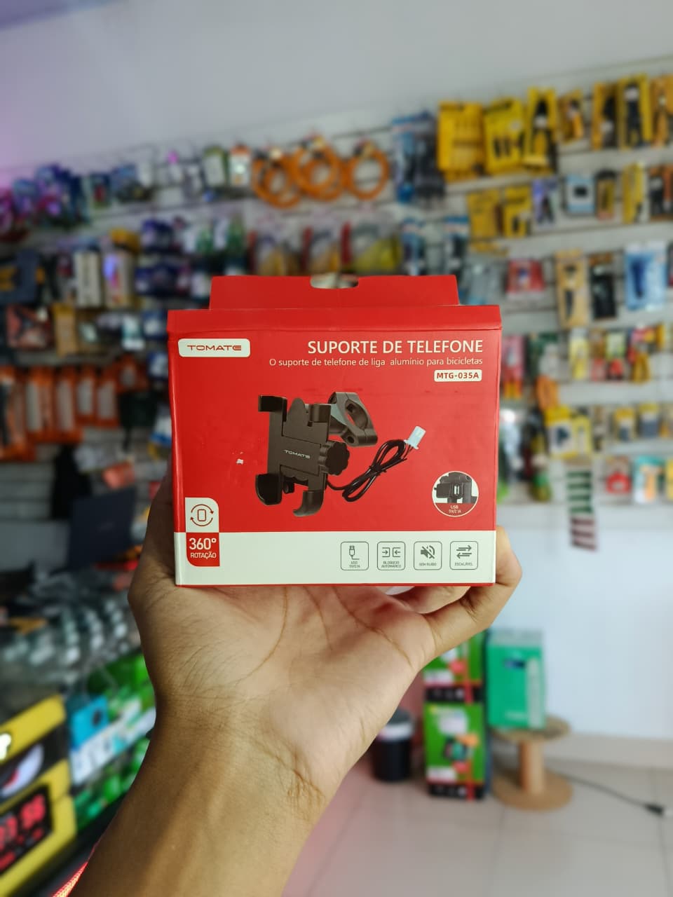 Explore Mais Aventuras com o Suporte Celular p/ Guidão em Alumínio com Carregador – Preto (Tomate) para Moto-Bicicleta – MTG035A